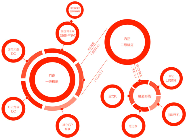 方正IT具有豐富的互聯(lián)網(wǎng)出口,利用ISP運(yùn)營(yíng)的靈活性,有效解決了當(dāng)前國(guó)內(nèi)互聯(lián)網(wǎng)南北互通不暢的問題,更好地提高用戶訪問速度,特別是獨(dú)享接入、多種點(diǎn)對(duì)點(diǎn)傳輸服務(wù),以及獨(dú)有的國(guó)際帶寬、備份鏈路,可以滿足各類企業(yè)用戶、商業(yè)集團(tuán)用戶、酒店、學(xué)校等機(jī)構(gòu)的網(wǎng)絡(luò)需求,實(shí)現(xiàn)真正意義的全互聯(lián)網(wǎng)的高速訪問。